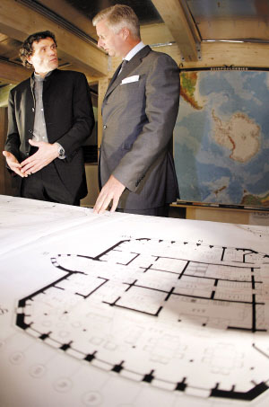 阿兰·于贝尔(左)和比利时王储菲利普(右)9月5日出席了“伊丽莎白公主”站的公开展。