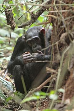 图片说明:黑猩猩大口吃土可能是为了健康着想。