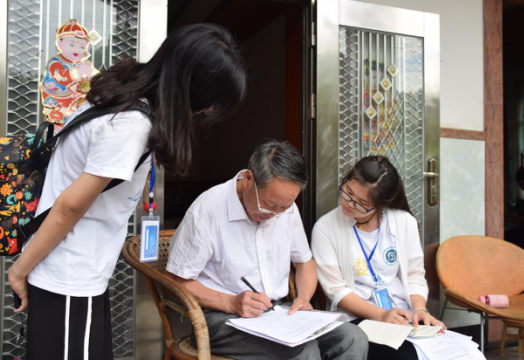 退休党员魏仲名正在认真填写问卷 汪若雁摄