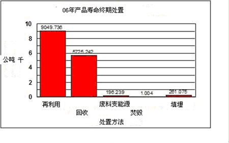 从客户处回收的产品相当于2006财年出货产品总重量的0.72%,和1998年出货产品总重量的8.8%。由于联想并未直接向大型企业客户提供联想产品的回收服务,因此,这里提供的处置客户返回寿命终期产品的数据来自联想通过执行欧盟WEEE回收计划、日本消费类产品回收计划和其他法定回收计划,以及联想在美国和加拿大推出的志愿回收活动,处置的寿命终期产品。此外,由于联想在2005财年收购了IBM个人电脑事业部,所以,按照联想中国的出货量加上2005年5月1日之后联想面向全球市场的出货量的总出货量,对2006财年出货产品的回收量进行了标准化计算。1998年出货量的标准化计算,则仅考虑了联想中国在该日历年度的出货量。根据整整一年来收集的数据,联想将制定未来几年的回收目标。
