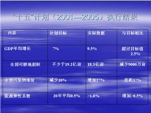 表中数字显示我国GDP的高速增长是以土地、环境和能源状况的下降为代价的。
