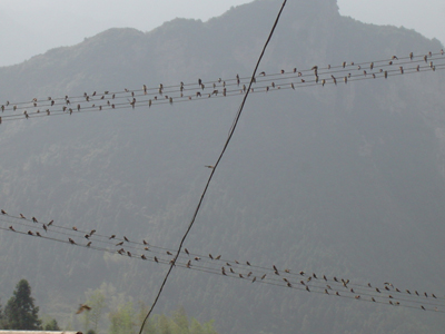 群鸟在鸟道栖息