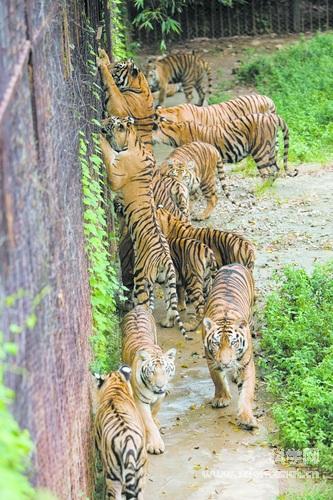 所谓“一山不容二虎”,但在熊虎山庄,十几只甚至几十只老虎“欢聚一堂”,它们缺乏起码的笼舍。