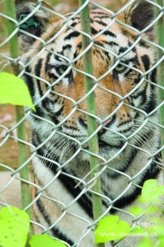 透过野化训练笼的铁丝,老虎的目光中依然威风不减,它们也在等待重归山林的一天。