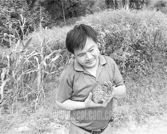 8月9日上午,天气很热。我在梅硐镇赶场后,11点左右骑着摩托车回家。经过这里时,突然看见前面有个像猫一样的动物,尾巴很粗很长,嘴里还叼着一个幼崽。受到摩托车的惊吓,那动物看了我几眼,就丢下幼崽窜到林中去了。我以为是碰上了“野猫”,就把其丢下的“小野猫”带回家。当地人听说后,都跑来我家看稀奇。直到有人看了后说,“这是野生保护动物,得赶紧报告林业站,让他们来处理”。很快,当地林业站人员来看了后又报告了县林业局。几名专家赶到我家后,经过仔细检查,确认该“小野猫”是国家一级野生保护动物云豹。此时,小云豹已离开母豹6个多小时了。为让小云豹尽快回到母云豹身边,我们把小云豹带到发现地。“刚放到地上,小云豹一下子就窜到树林中不见了。”说完这话,吴脸上露出了灿烂的笑容。