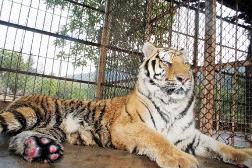 李洋介绍,四只小虎狮兽的虎爸爸今年五岁,是东北虎,狮妈妈六岁,是非洲狮,从出生到现在一直都是一起演出。“好象天生就是夫妻,虎爸比狮妈小一岁,狮妈有时在表演中会照顾一下虎爸。因为表演需要,夫妻俩还真的拜过堂成过亲,也算是合法夫妻。”李师傅说到这里时,一脸乐呵呵的。