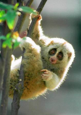 3月18日,乐山一所小学内突然发现一只奇怪的小动物,看上去有点像猫又有点像猴子,最后经林业部门确认,这小家伙原来是国家一级保护动物蜂猴。昨日下午,乐山市林业局将这只蜂猴送往省林业厅。