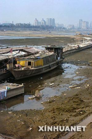 | 湘江长沙段河床上搁浅的船只(12月6日摄)。新华社记者 龙弘涛 摄 |