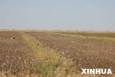 | 塔里木河近岸新辟的棉田 新华社发 |