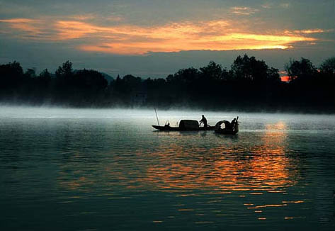8、湘江江湾烟波浩淼 湘江又称湘水。主源海洋河,源出广西临桂县海洋坪的龙门界,于全州附近,汇灌江和罗江,北流入湖南省,经17县市,在湘阴濠河口分为东西两支,至芦林潭又汇合注入洞庭湖。干流全长856千米,主要支流有潇水、舂陵水、耒水、洣水、蒸水、涟水等。