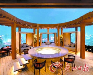去年11月开幕的上海外滩茂悦大酒店顶层Vue Bar,名师设计装潢,外有浦东和外滩的夜色。Vue Bar的确名副其实,既可以远观浦东摩天大楼豪华景致,也能看到近处外滩的老上海风情。最出彩的是顶层天台,摆放着几个舒服的沙发床和圆台,最适合斜倚在这里举着高脚杯,饮着红酒眺望月亮星辰,更特别的是天台中央有几张舒服的坐椅,竟然围着一个jacuzzi。当然这个jacuzzi不仅能看,也能用,当然一开始许多客人不好意思,只是在这里浸浸脚,酒过三巡之后却兴致勃勃跃入温暖的jacuzzi,任按摩水力放松身心。
