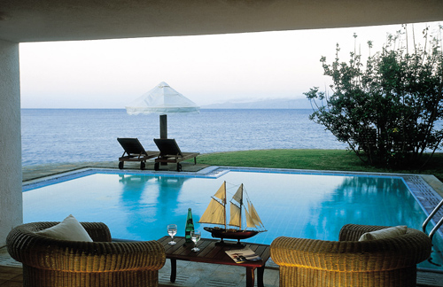 在岛上,躺在泳池里,望着爱琴海,肉体是轻的,精神是静的,希腊的阳光抚触舒张身上每一个毛孔,是一种心灵的SPA,而日子总和泡水、游泳、晒太阳、吃很晚的早餐、很久的晚餐、开游艇去小岛野餐、在星空下的喝香槟喝到月亮沉下去……有关,在这里,就几乎要将这种奢华之感当成一种习惯了。日出仿佛只是为了叫醒海,而清晨的爱琴海是银色的。