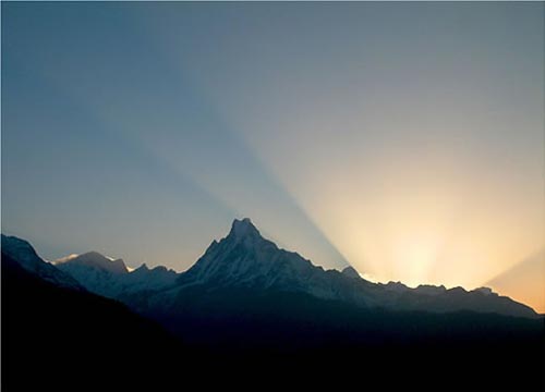 距离博卡拉约40分钟车程的桑冉库特,是个观看日出的最佳场地,这里是博卡拉观喜马拉雅日出最好的地方:看着金色的阳光一点一点把鱼尾峰慢慢的涂上一层金黄色,心中会洋溢着满满的幸福感觉。