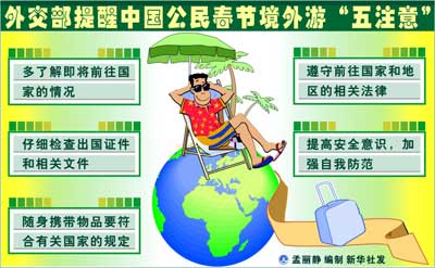 外交部提醒中国公民春节境外游"五注意"