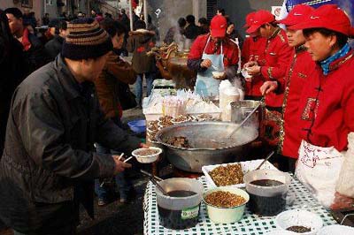 护国寺庙会上货摊多,货物齐,在这里不仅买货,还可以听听相声,看看杂耍,是吃、穿、用、玩应有尽有。《京都竹枝词》中云:“东西两庙货真全,一日能消百万钱,多少贵人间至此,衣香犹带御炉烟。”