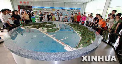 2006年5月6日,游客参观三峡工程模型图。新华社发