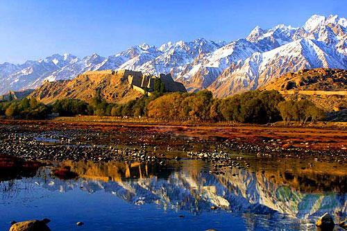 第二天:天亮时即出发前往帕米尔高原,此路线是古丝绸之路南道,古称“葱岭”,其中盖孜河谷褶皱山脉的五彩山脉,是非常适合表现摄影手段的景观。出峡谷,不久出现高原山水奇景——布伦口白沙山和沙湖。流水任意在河滩上划着美妙的图案,湖对面是绵延几公里的白沙山,如奇幻仙境。过沙湖后就是著名的“昆仑三雄”:慕士塔格峰、公格尔峰、公格尔九别峰并肩耸立,喀拉库里湖就静静躺在三座雪山怀抱中。往慕士塔格峰冰川拍摄。抵塔什库干县拍摄石头城后,前往红其拉甫中巴界碑,沿途有众多雪山、冰川景观以及巴基斯坦商旅,雪山下是高山草原牧场和塔吉克族村庄。这里有民族风情与高原雪山风光相融合的动人画面。