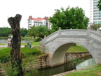 校园的建筑很有特色,红砖白墙,线条明快,加上四面繁花似锦。厦门也被称为“花园城市”,那么厦门大学也就可以称为“花园的大学”的。校园里的果树很多,大把大把的龙眼把枝头都压弯了,看得小黑口水直流。要不是顾及小黑辛辛苦苦累积起来的形象,早就爬上去偷吃了。不如把“花园大学”改成“花果大学”又何妨, 值得一提还有厦大水库,听阿蔚说夏天是美女出没频率很高的地方,于是慕名前往,发现雨后的水库水很黄,没有人游泳。小黑看美女的计划又无限期推迟。