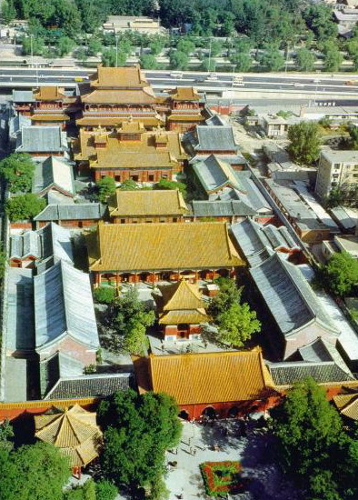 原雍亲王府坐落在原北京城的东北角的城墙内,远离那些豪宅云集的内城和什刹海地区,与市中心保持距离,但又从一个地方注视发生的一切。今天它已早不是雍王府时代的模样了,变成了金瓦覆顶的喇嘛教寺院。
