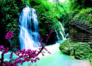 黑山谷位于重庆万盛区,渝黔交界处。听说这里是“小张家界”,不料却看到了“小黄河”。驱车盘山而上,突然风雨大作。进得景区,先要坐上一段6公里的电瓶车。古木夹道,一路疾驰,平日安静的溪水,今日借雨势裹着泥土奔流而下,平添几分黄河般的壮观。空气好得没话说,没有见到传说中的黑叶猴和猕猴,却见有人雨后捉起一串小蟹,收获颇丰。走到中途,已标明是贵州地界——站在桥上,横跨两地,也算此行物超所值。