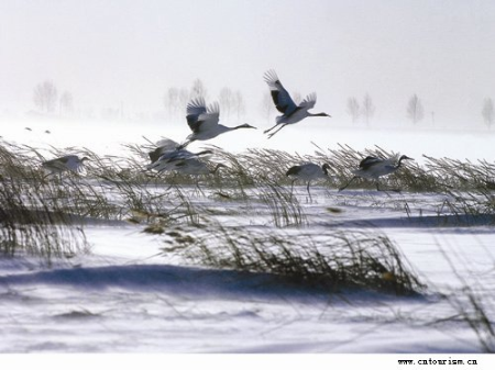 以往这种场面是极其罕见的,近几年因当地气候变暖,入冬偏晚,冰冻期缩短,冬季里也可以找到食物了,它们中一些聪明点的家伙便不愿再受南飞的疲劳和辛苦,留守在扎龙。