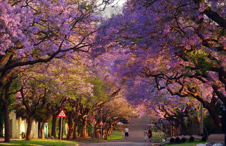 有“紫薇之城”美誉的比勒陀利亚全市共有8万株紫薇树,每到10月份初夏来临时,紫花盛开。