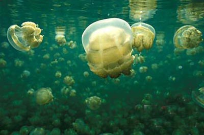 它的海水共有7种不同的颜色,让每一个见过它的游客都赞叹不已。究其原因,是由于帕劳的海水清澈无污染而其海底景观造型奇特,一会儿是黑黑的礁石,一会儿是斑斓的软硬珊瑚,抑或是细细沙砾,还有远古时代沉积的火山灰,这一切都被清澄的海水毫无保留地映上了海面,于是就有了这养眼的色彩。据说,世界上很多广告公司都选择到这里来拍广告片。