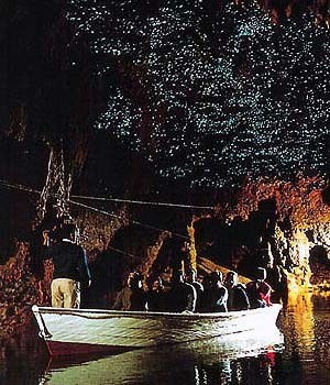 传说1887年,一名英国测绘师在当地毛利酋长陪同下,乘亚麻小筏,手持火把进洞探险,发现了洞内奇景。这些发光体是当地一种萤火虫的幼虫。它们聚集在一起,形成了奇妙的景观。从此以后,游人接踵而至,萤火虫洞也扬名世界。距发现此洞百年后的1989年,新西兰当局终于把这个洞的所有权归还给毛利族人。