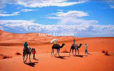 看完金字塔,您就可以骑上骆驼直接进入撒哈拉大沙漠,去寻打三毛的“撒哈拉”,去体会沙漠漫游的乐趣,也许您真会遇上另一个《撒哈拉的故事》。