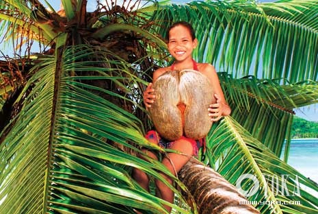 海椰树是塞舌尔的标志,传说中亚当夏娃偷吃的禁果,所以被逐出伊甸园,但那禁果并非苹果,而是海椰子。看过这奇异的果子,除了会相信这传说的真实,肯定还会感叹造物的神奇。世上居然有这样的果实,不但分雌雄两种,还分别长得像人类男女两性的性征!