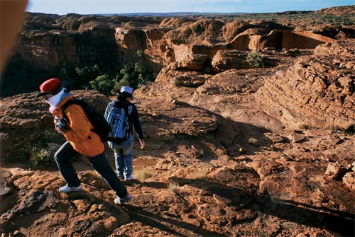 澳大利亚共有6个州、一个领地,北领地就是这个惟一由土著人管理、和六大州并列的领地。它的面积约占澳大利亚大陆面积的六分之一,人口仅占全澳的百分之一,境内多为沙漠,是澳大利亚最荒野的地方。艾尔斯岩(AYERSROCK)是领略北领地之神秘的首选地,一块叫做Uluru的石头是目前世界上最大的整块不可分割的单体巨石。由于被土著人赋予了图腾的含义,被誉为象征澳大利亚的心脏。据说距今已有5亿年历史。长3.62公里、宽2公里、高348米,岩面上镌刻着无数平行的直线纹路,形状像两端略圆的长面包。岩石色泽赭红,光溜溜的表面在太阳下闪着光芒,在空寂无物的广袤沙漠上突兀挺拔,直刺苍穹,既雄伟壮观又神秘莫测。