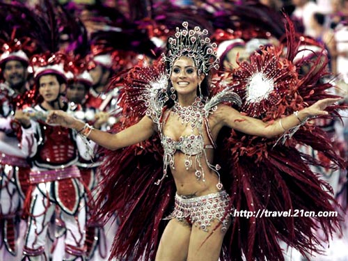 每年的二月中下旬,巴西举国欢腾3天3夜。届时,里约热内卢的大街小巷张灯结彩,彩旗飞扬,到处披上节日的盛装。