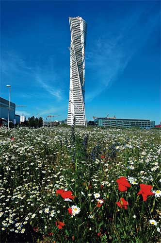 新兴的北欧设计建筑静静座落在运河边或都市里,无论是哥本哈根的图书馆、歌剧院,斯德哥尔摩地下铁、马尔摩的旋转大楼,这些建筑有着极简且大胆的线条,看起来唐突却没有将城市气氛切割成畸零地,反而适切地融入其中,提供当地民众一个方便实用的功能空间,同时也为市容增添更多惊奇。