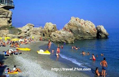 罗卡角 (Cabo da Roca)是葡萄牙境内一个毗邻大西洋的海岬,它处于该国的最西端,也是整个欧亚大陆的最西点。它位于北纬38度47分,西经9度30分,距离里斯本大约 40公里。人们在罗卡角140米高的山崖上建了一座灯塔和一个面向大洋的十字架。在罗卡角上,竖立着一座天主教碑,上面刻写着葡萄牙历史上最著名的诗人卡蒙斯的著名语句——“陆止于此,海始于斯”,这正是对罗卡角的注解。从里斯本沿海岸驱车一个半小时可到达罗卡角,途中会经过葡萄牙著名的海港城市盖斯卡斯。