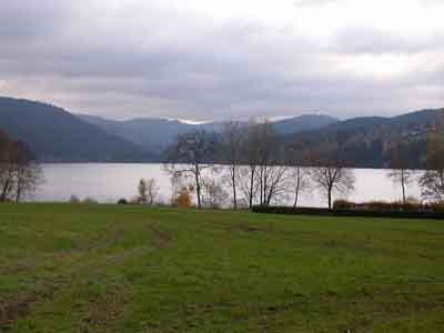 看看黑林山的蜂蜜用素净的长耳陶罐装着,上面绘着花朵,很有味道,就花9.95?买了一罐(250g)。后来回到上海后,发觉只剩下不多一点。可能是因为带回Ulm一直搁在客房里,水分挥发掉了有关。食品如果不是马上回来,还是以不买为妥。既然放弃了咕咕钟,我就醉心于湖光山色。13:50在湖边找了个位置,开了瓶OETTINGER Original,慢慢地啜饮起来。知道14:38有班车可去Freiburg, 我有足够的时间可以enjoy。看着同胞们不断地赶来赶去,拍照留念,不断地购物,我终于不用象他们一样。也算象欧洲流浪汉一样,举着个啤酒瓶,不时地自尽一下;也算象欧洲的雅痞,坐在湖边,一边欣赏风景,一边看看书。