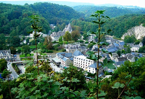 杜柏,位于比利时南部卢森堡省,一座错落在阿登山区坳中的石头小城,长年浸润在湿漉漉、冷清清的空气里,四面环山,三面环水,屋舍俨然,小巧和安静地散发着萧索气息。常住居民仅仅450人左右,由于历史上重要地位,早在1331年就被称为“城”(town)。说到小,它还真是名副其实,步行只需十分钟,就能从城头走到城尾。不经意地,便出城走到了郊外河边。阳光下,河水清澈,浮萍飘渺,绿绿树枝清新如浴徐徐曼动,给宁静的小镇增添一丝丝古韵幽雅。