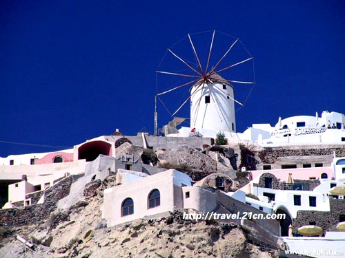 岛上有太多景点可以游览了,可以骑着租来的摩托车,不管是50cc的小绵羊,还是500cc的哈雷,都可以奔驰于贯穿整个岛屿的乡间小道。岛上没水,连小溪流都没有,就自行挖井储水,加上火山岩的地形,土地贫瘠,活像在戈壁大沙漠一样。但世居此地的希腊子民们,利用天然的观光资源,硬是把这个小岛搞活了,使人们置身此地,自然美景绵延不断、夜夜笙歌通宵达旦,真的是流连忘返,也忘了此地背后有过的辛酸历史。