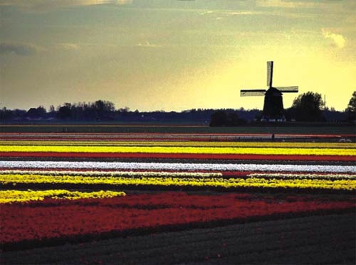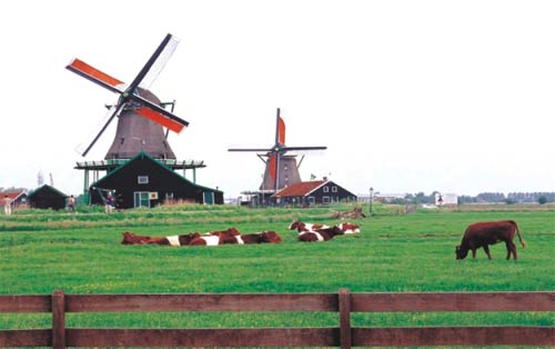 郁金香本是从土耳其引进的,现在却成了荷兰的象征,在土耳其反而已经绝种。古老的风车是荷兰人与海水搏斗的佐证,现在依然在乡间发挥作用,他们还建造了新式风车用来发电。在广阔的绿色空间里,可以看到各式风车和谐地融于荷兰人宁静的生活。