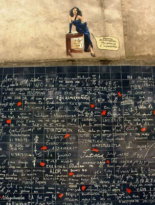 不过,对于情侣们来说,巴黎还有一个爱的好去处,那就是爱墙。每逢情人节时,这里都聚满了情侣,拥吻,留影,毫无顾忌地表现他们的爱。