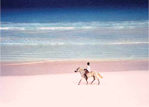 巴哈马群岛上哈勃岛的粉色沙滩,日前被美国《新闻周刊》评选为世界上最性感的海滩。粉红海滩长约三英里,水清沙幼。真正的粉色沙砾是其最大特点。