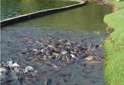 佛城的湖中被人们放生的鱼