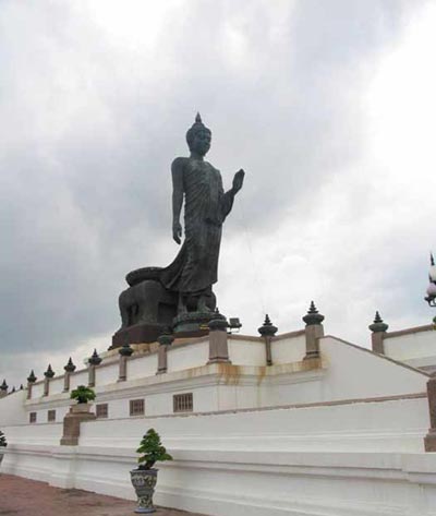 没有城墙,而是开放式的,所有人和车辆都可以免费进入。这里有一座巨大的青铜立佛像,据说是西班牙设计师设计的,佛像衣袂飘然带风,神态安详,值得一看。每逢周末,很多泰国人来这里聚会、吃饭,走的时候会把所有垃圾都带走,环保意识很强。