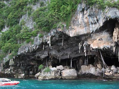 从普吉岛东南出海,便来到了有“海上桂林”之称的攀牙海湾。奇形怪状的礁石和岛屿,参差错落,连成一片。畅游期间,犹如身处画中,又像莅临仙境一般。再往前走大约两小时,在茫茫海面上,出现了两个对峙而立的岛屿——东面的披顿岛和西面的披历岛,被当地人合称为披披岛。这里就是珍馐燕窝的盛产地之——燕窝岛。
