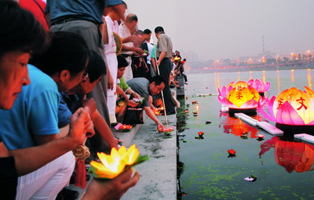 绍兴人放河灯