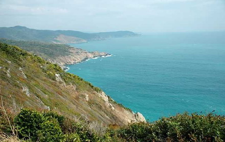 “锦母角”—中国大陆架最南端的一点,再向前一步就从悬崖掉进大海。地理位置:北纬18°09.5′,东经109°34.4′。