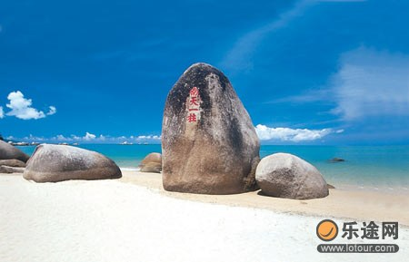 位于海南省三亚市西郊23公里处,天涯海角风景区总体规划陆地面积10.4平方公里,海域面积6平方公里,背负马岭山,面向茫茫大海。这里海水澄碧,烟波浩瀚,帆影点点,椰林婆娑,奇石林立水天一色。海湾沙滩上大小百块石耸立,“天涯”、“海角”和“南天一柱”巨石突兀其间,昂首天外,峥嵘壮观。史载,“天涯”两字为清雍正年间崖州知州程哲所题,铭刻在一块高约10米的巨石上。(岩石下方有郭沫若咏“天涯海角”的三首诗题刻)“海角”两字刻在“天涯”右侧一块尖石的顶端,据说是清末文人题写。这两块巨石通称“天涯海角”。传说一对热恋的青年男女分别来自两个世仇的家族,双双发誓不管到天涯海角也要永远在一起。在族人的追赶下,被迫逃到此地双双跳进大海,化成两块巨石,永远相视相对。后人为纪念他们的坚贞爱情,刻下“天涯”“海角”。现在恋爱中的男女也常以“天涯海角永远相随”来表达自己的心迹。离“天涯”摩刻左侧几百米,有一尊高大独立的圆锥形巨石,这就是“南天一柱”奇景。它擎天拔地,有独立南天之势。“南天一柱”据说是清代宣统年间崖州知州范云榜所书。“南天一柱”来历还有传说。相传很久以前,陵水黎安海域一带恶浪翻天,人民生活困苦。王母娘娘手下的两位仙女知道后偷偷下凡,立身于南海中,为当地渔家指航打渔。王母娘娘恼怒,派雷公雷母抓她们回去,二人不肯,化为双峰石,被劈为两截,一截掉在黎安附近的海中,一截飞到天涯之旁,成为今天的“南天一柱”。