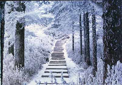 北方的雪太大,来得也生猛,一下子将大地整个儿罩住了。视野内白茫茫的一片,缺少了几分婉约和灵动。而南方的雪斯斯文文地飘落,似乎是藏在深闺里的姑娘,寻不见她的踪影。峨眉山“柔美白雪压绿树,剔透冰晶裹红花”的冰雪奇景,让北方游客赞叹。