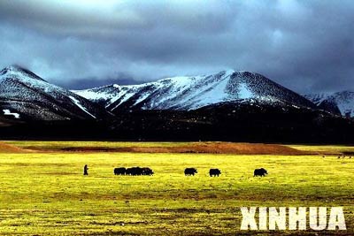 | 2005年6月6日,西藏纳木错的草原美丽如画。海拔4718米的藏北纳木错湖是世界海拔最高的咸水湖泊,位于西藏当雄县与班戈县交界处,湖水水质达到Ⅰ类水域标准。湖水与周围的雪山草地共同形成了藏北地区的旅游胜地。 新华社发 (李颀拯 摄) |