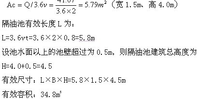 设隔油池废水水平流速为2mm/s,则隔油池过水断面面积为: