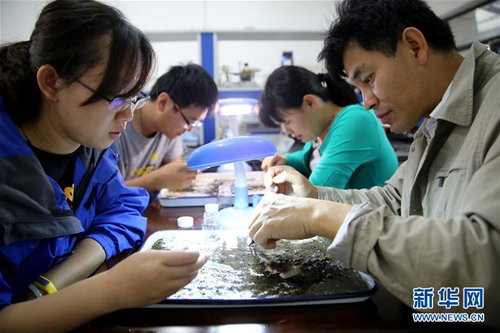 6月28日,中科院水生生物研究所研究员谢志才(右一)和中科院水生生物研究所博士张君倩(左一)在长白山科学研究院实验室里挑选生物样本。近日,中科院水生生物研究所的研究团队与长白山科学研究院的研究人员合作,开展长白山二道白河基于大型无脊椎动物的水体健康评价研究。该研究将持续两年多时间,旨在通过对二道白河水底底栖生物的调查研究,建立水体健康评价体系,为该地区河流的监测、保护、管理和恢复等提供参考。新华社记者 金立旺 摄